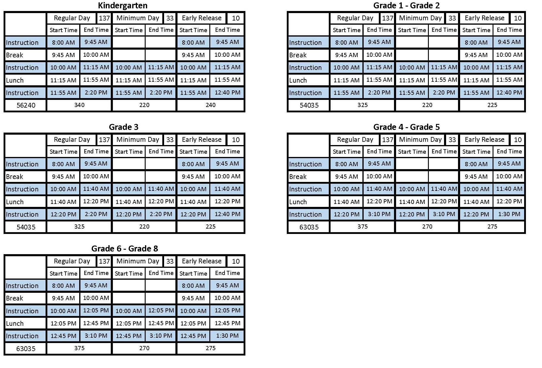 Bell Schedule & Instructional Minutes